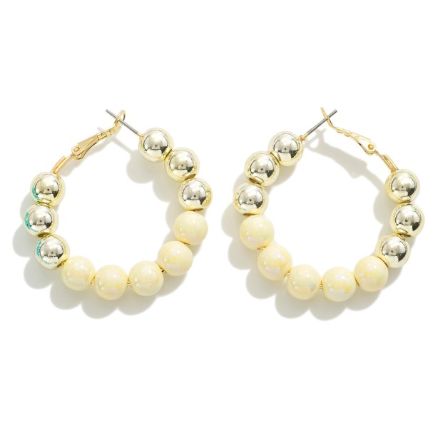 Two Tone Metallic And Pearlescent Beaded Drop Hoop Earrings