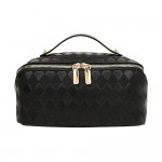 Vegan Leather Diamond Checker Travel Makeup Bag