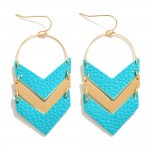 Vegan Leather & Metal Tone Chevron Drop Earrings