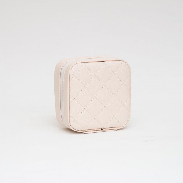 Vegan Leather Travel Jewelry Box With Diamond Stitch Detail