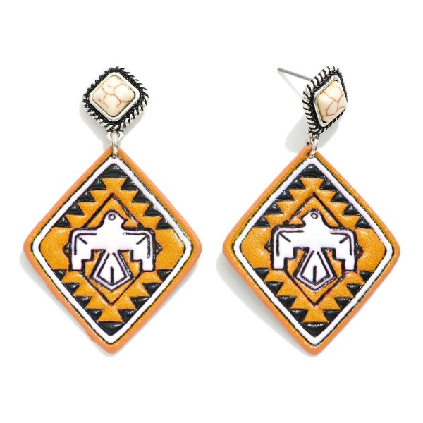 Vegan Leather Western Eagle Drop Earrings Featuring Stone Post