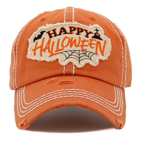 Vintage Distressed Happy Halloween Patch Baseball Cap.
