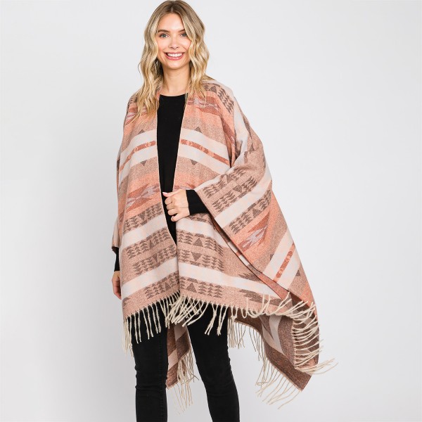 Western Pattern Ruana Wrap With Tassels