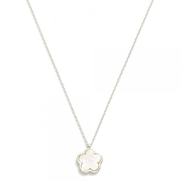 White Gold Dipped Dainty Chain Link Necklace Featuring Flower Pendant