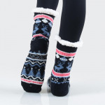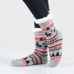 Women's Christmas assorted reindeer faux sherpa lined slipper socks.
