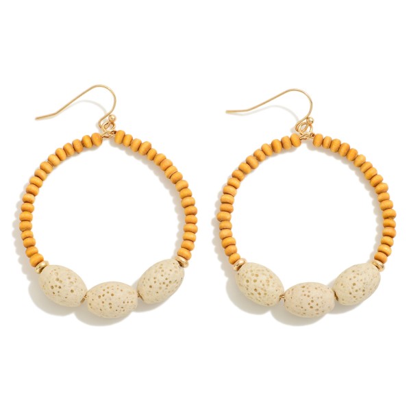 Wood Beaded Circular Drop Earring With Dimpled Accent Beads