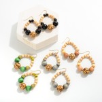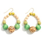 Wood Beaded Drop Earrings Featuring Leopard Print Accents.