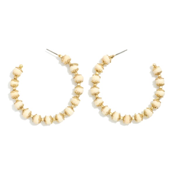 Wood Beaded Hoop Earrings With Gold Tone Details
