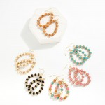 Wood Beaded Teardrop Drop Earrings Featuring Gold Tone Details
