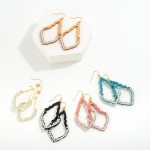 Wood Cut Teardrop Earring With Rhinestone Stud Details