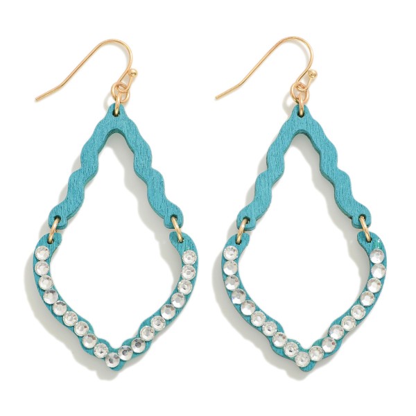 View more Wood Earrings, Teal, Rhinestone Earrings, Teardrop Earrings