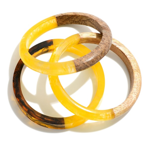 Wood And Resin Stackable Bangle Bracelet Set of 3