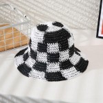 Woven Paper Straw Bucket Hat Featuring Two Tone Plaid