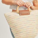 Woven Straw Bag With Wooden And Leather Handles
